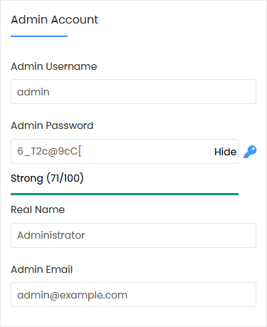 • Admin Password: Use a strong password.